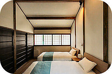 Im Schlafzimmer von meist Machiya sind 2 Bätten und ab die 3. Person gibt es Futon in japansicher Art zu schlafen. Alle 13 Machiyahäuser sind nur für Sie allein. In jedem Haus fühlen Sie und Ihre Reisebegleiter/inen sich ganz allein in einer privaten Atomsphere in Mitten Kyoto City.